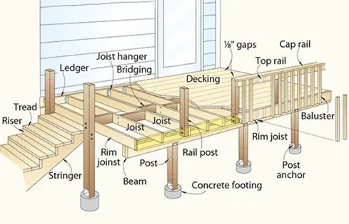 Make sure the stair handrails and the deck railings are secured. According to deck inspectors, railing failure is one of the largest sources of deck injuries followed by ledger board failure.